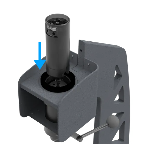 Semplice posizionamento del pezzo di prova tramite manopola manuale.